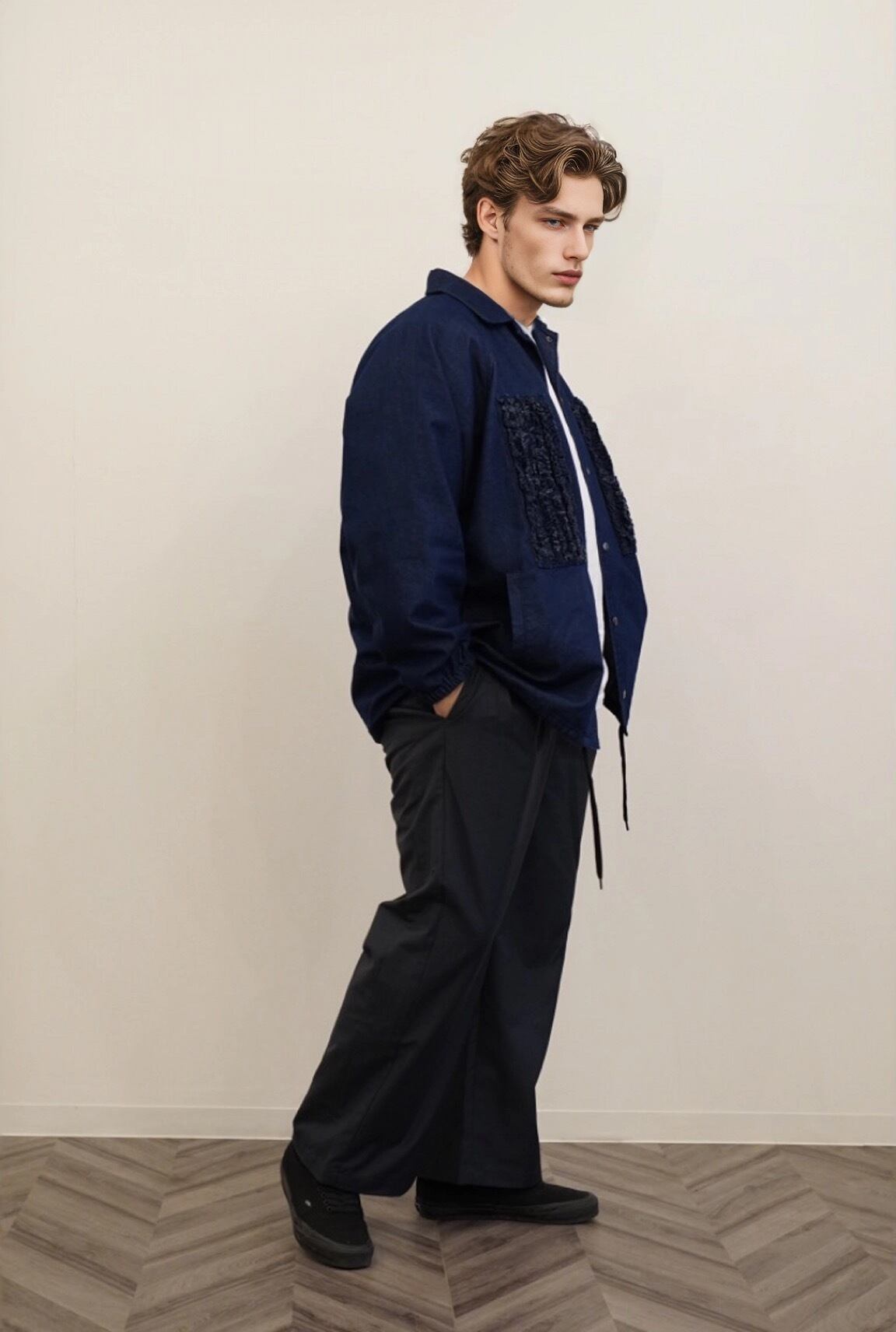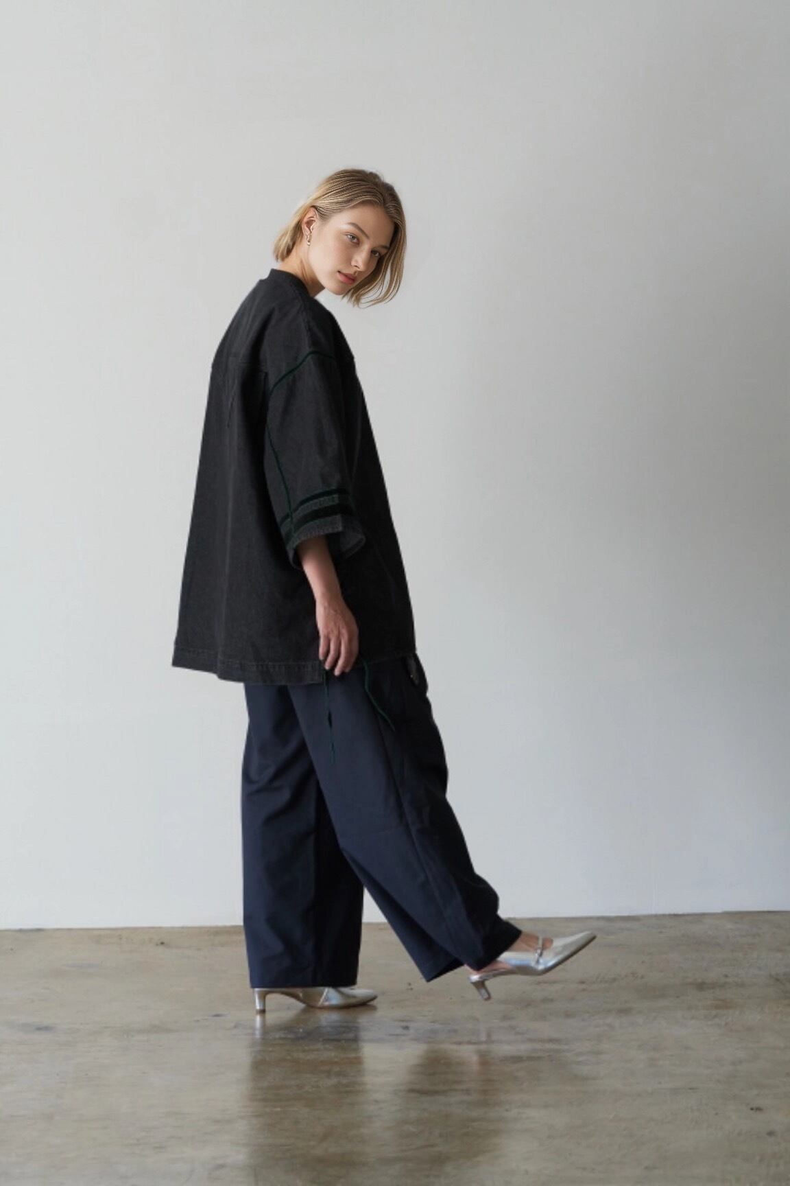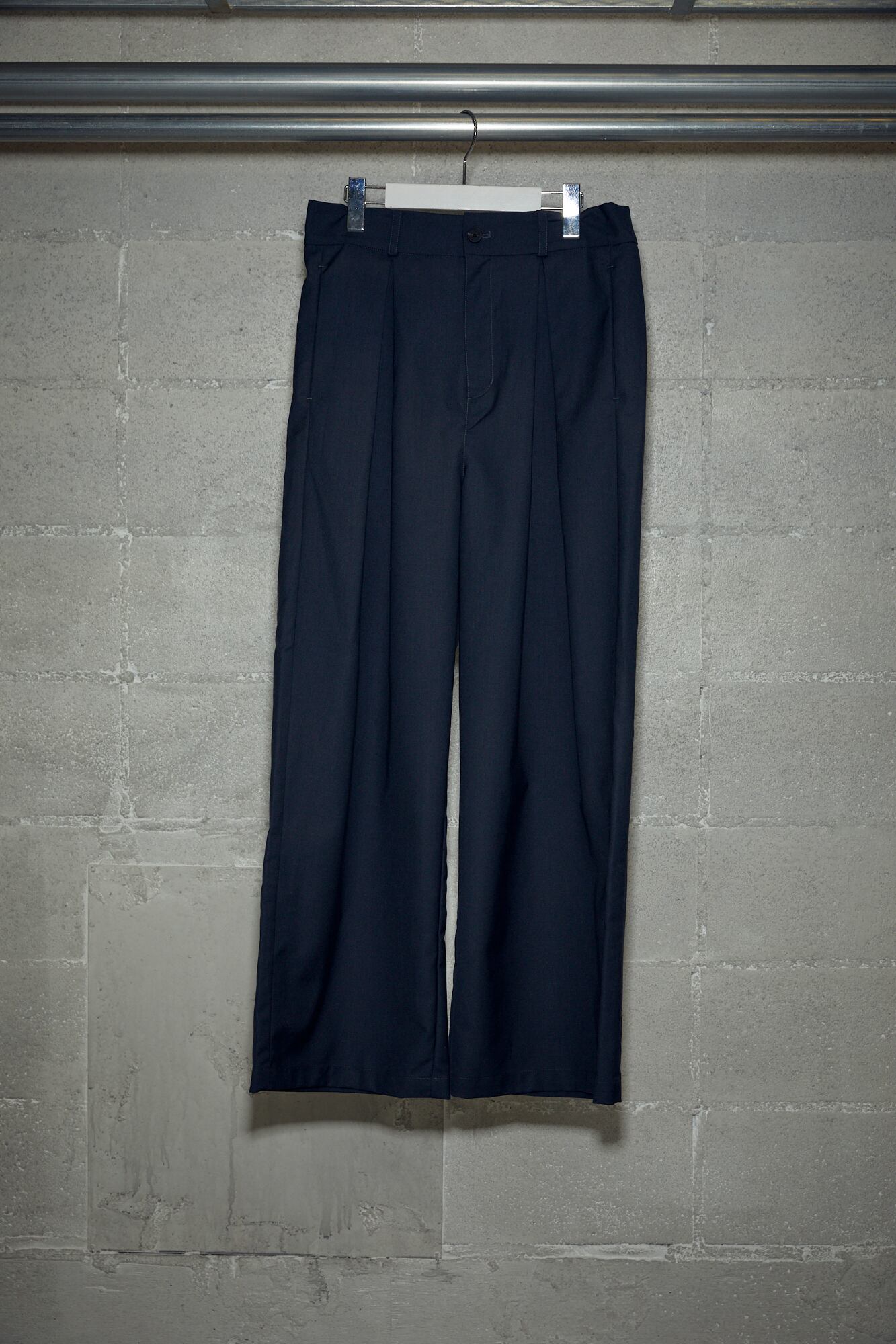 ウエストのタックは左右に広がるインバーテッドプリーツを採用し、特徴的なパンツに仕上げました。ウエスト、渡り、膝、裾にかけて絶妙なバランスに設定し、綺麗なAラインを作れるシルエットにこだわりました。