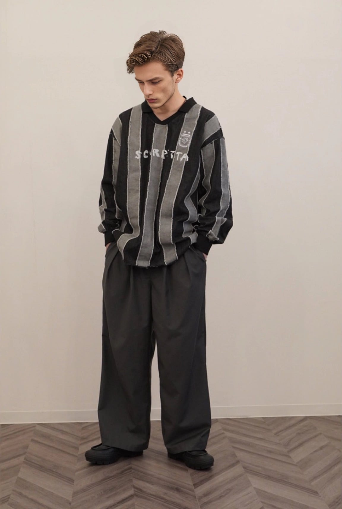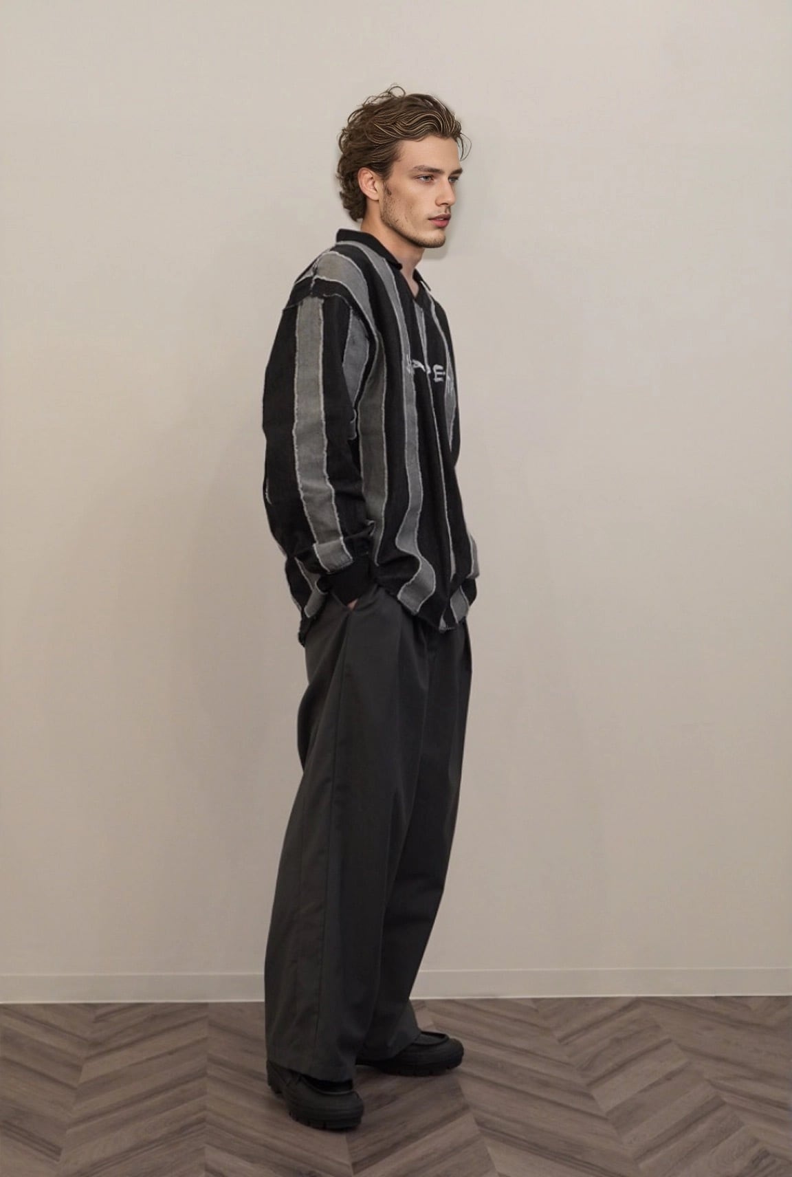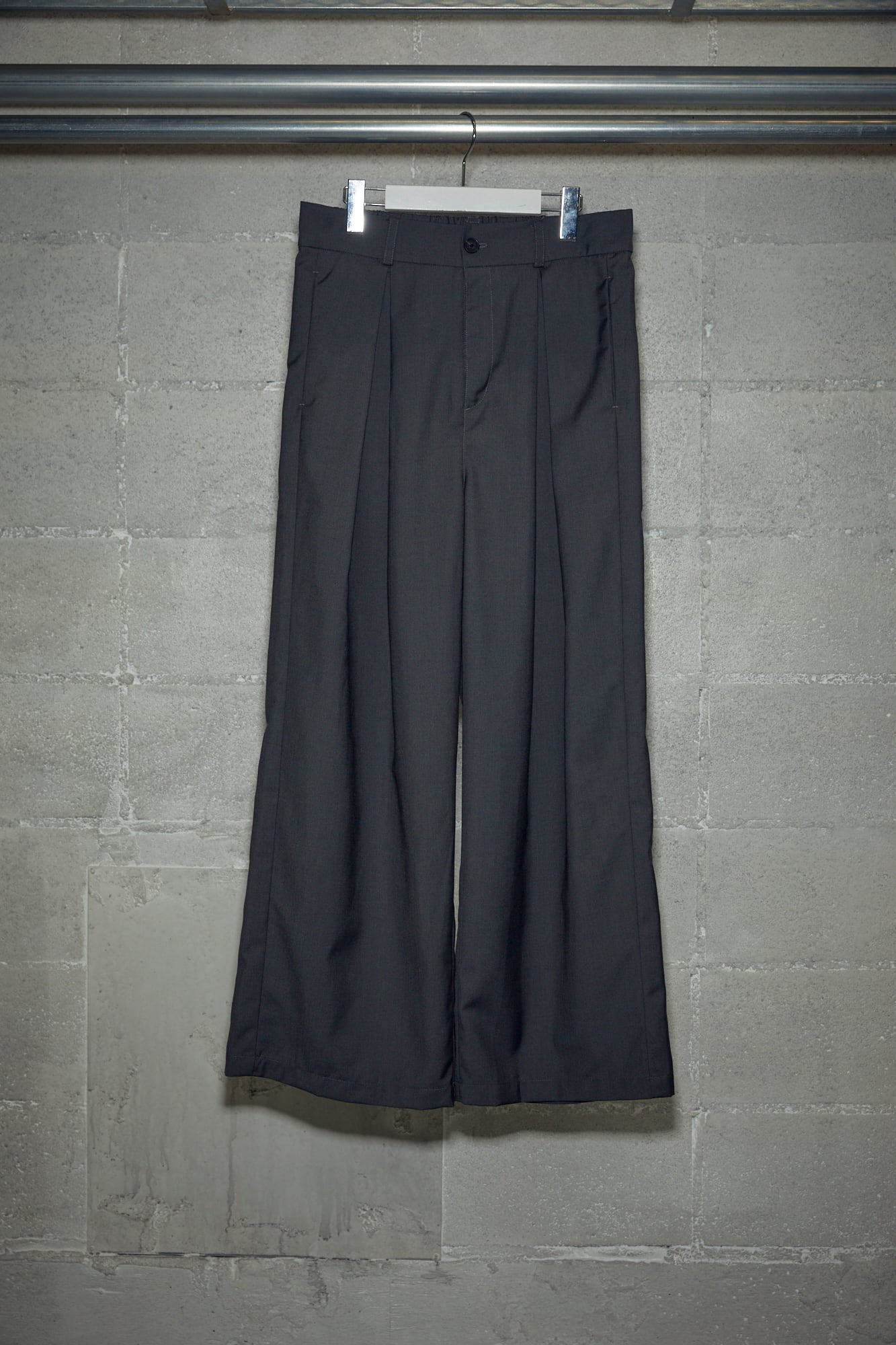 ウエストのタックは左右に広がるインバーテッドプリーツを採用し、特徴的なパンツに仕上げました。ウエスト、渡り、膝、裾にかけて絶妙なバランスに設定し、綺麗なAラインを作れるシルエットにこだわりました。