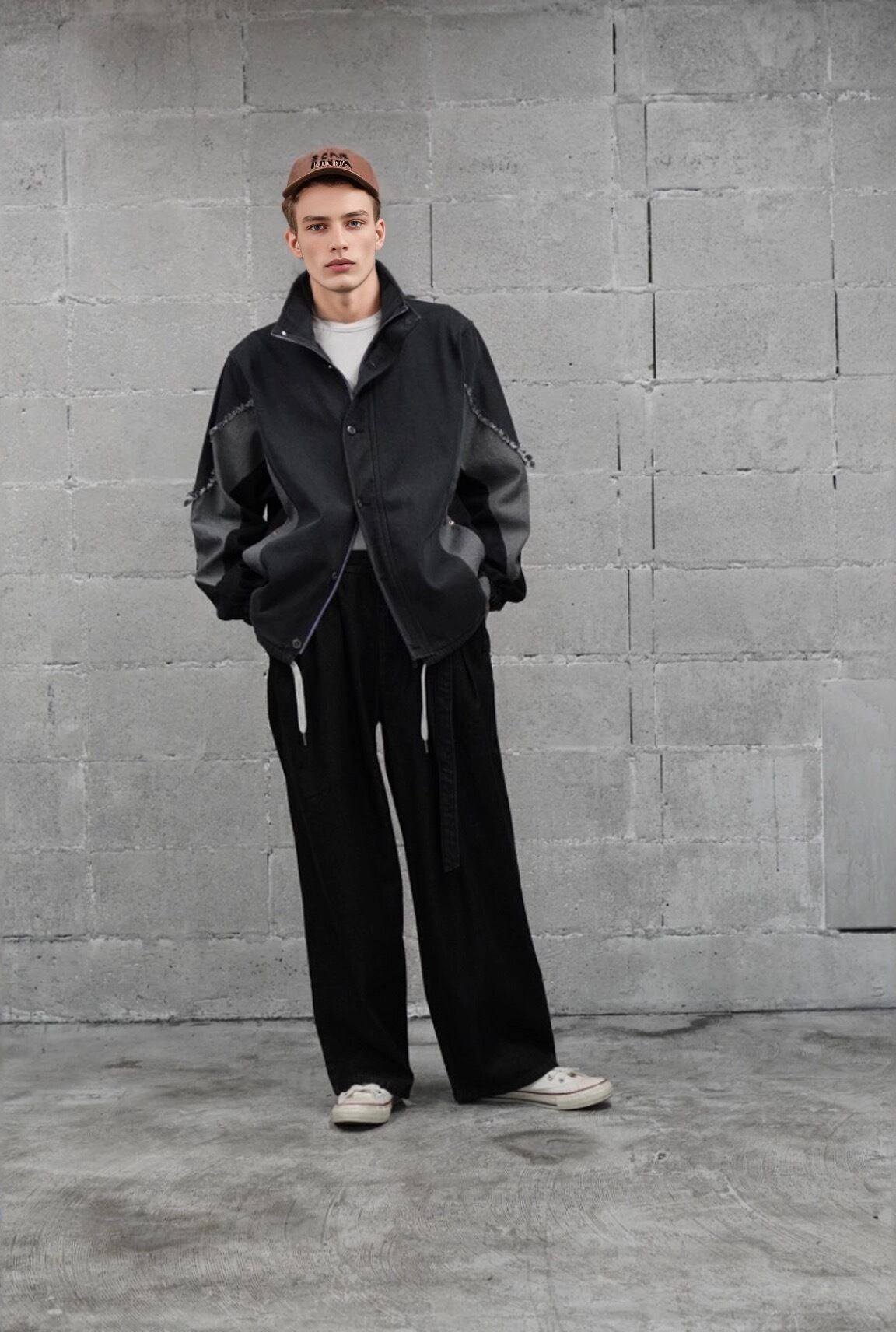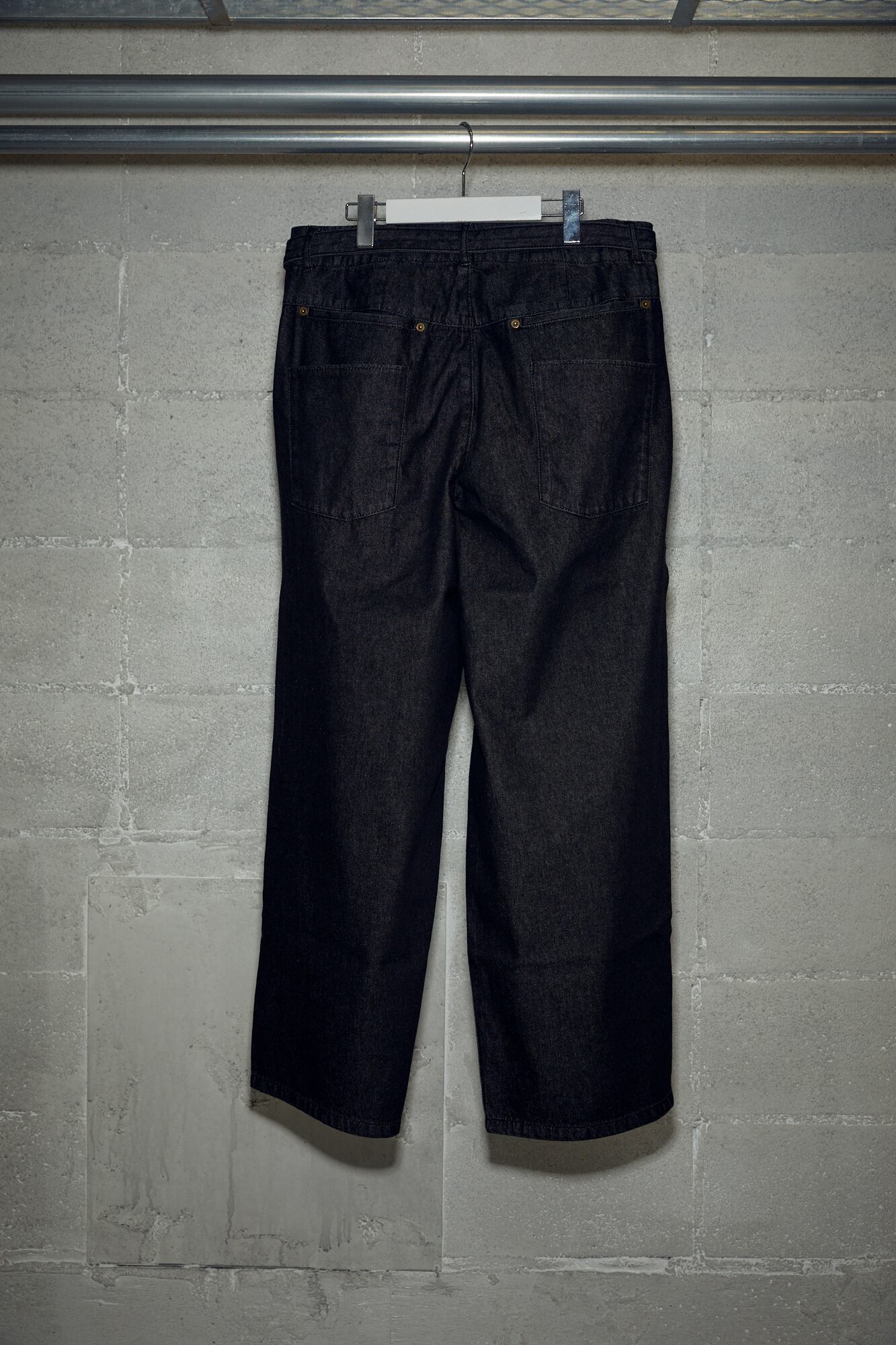 スラックスタイプの2タックパンツ。軽すぎず、重すぎないデイリーな着用にちょうど良い10ozデニムを採用しました。オールインワンの下部をデザインソースに、真っ直ぐストンの落ちるワイドシルエットに仕上げました。こちらはより大人が取り入れやすいワンウォッシュ加工。綺麗めなスタイリングにマッチするように仕上げました。