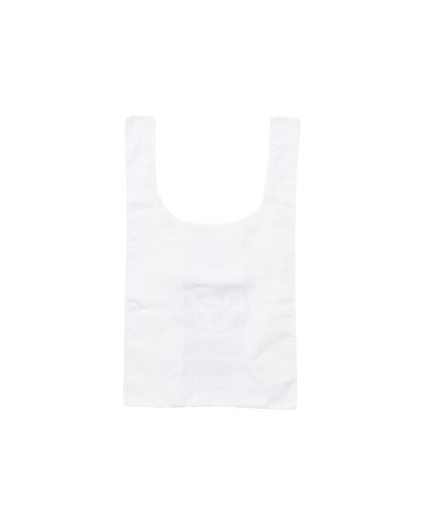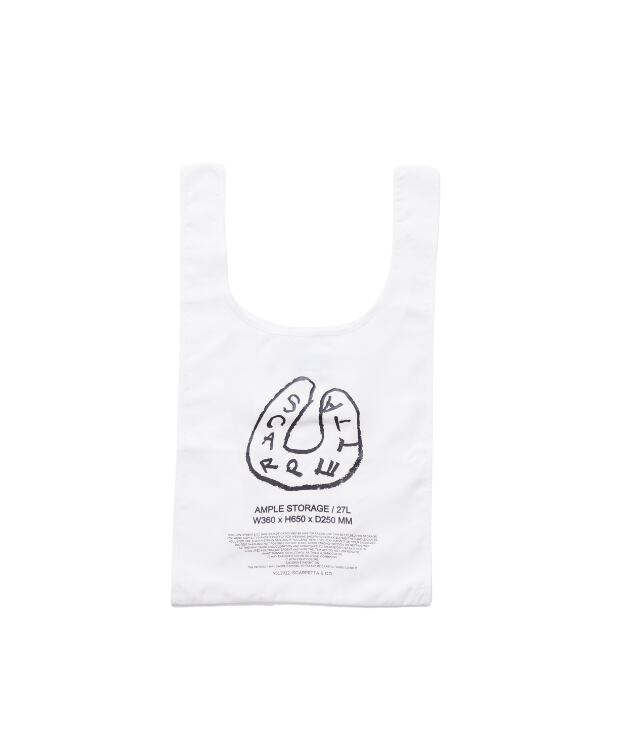 ポリエステルのリップストップ生地のECO BAG。 スカルペッタのグラフィックと商品情報をそのまま英語表記でプリント。 小さい文字をお皿に見えるような遊び心を入れました。