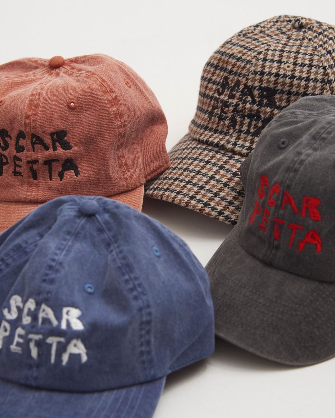 グレンチェックにSCARPETTAの刺繍を施したキャップ。